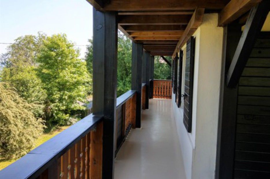La chambre est exposée nord ouest avec vue lac.